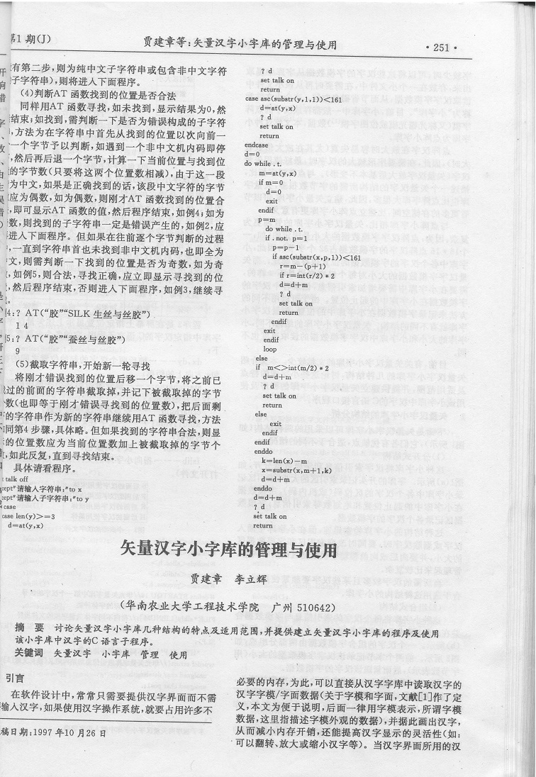 矢量汉字小字库的管理与使用