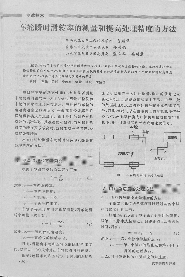 车轮瞬时滑转率的测量和提高处理精度的方法..