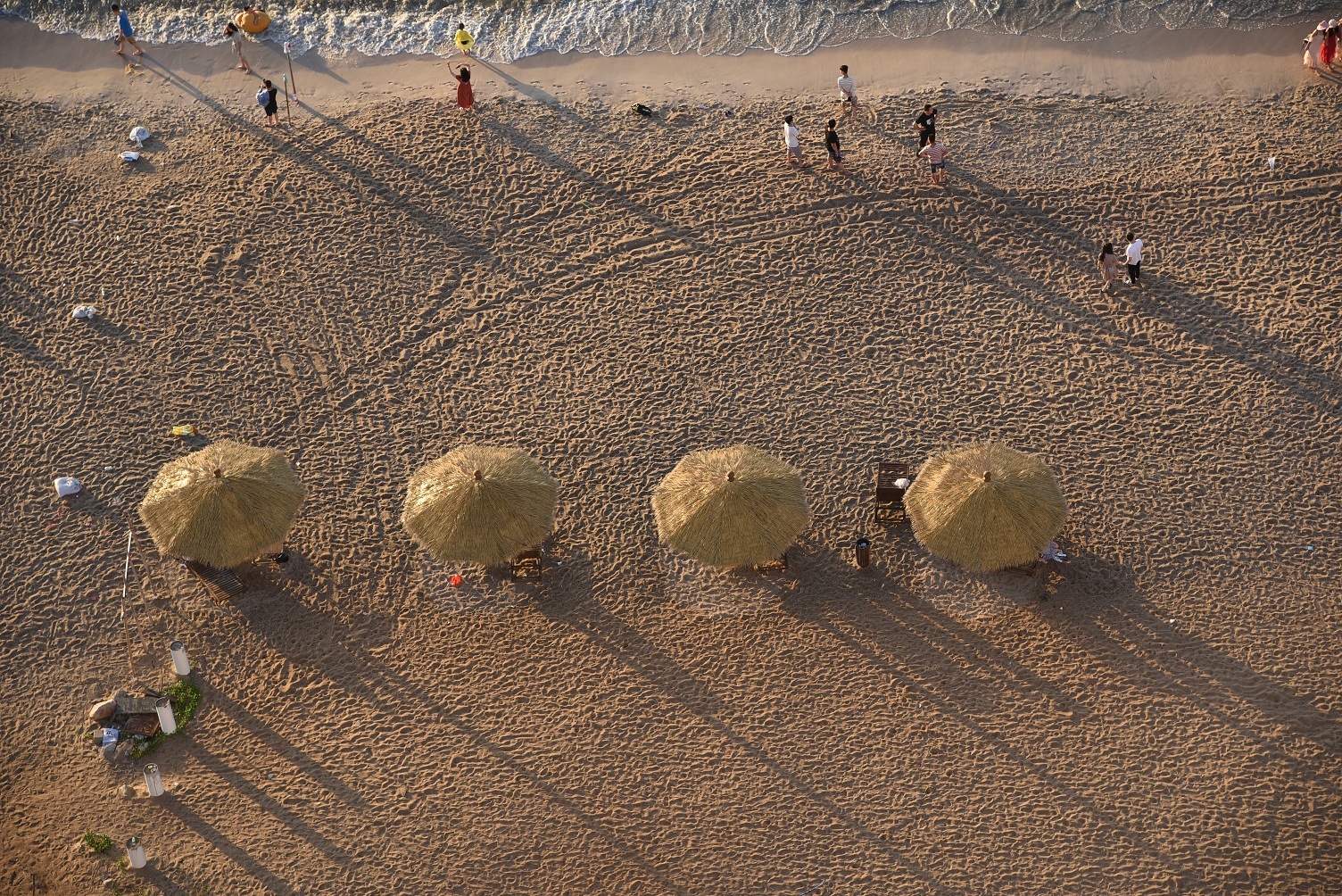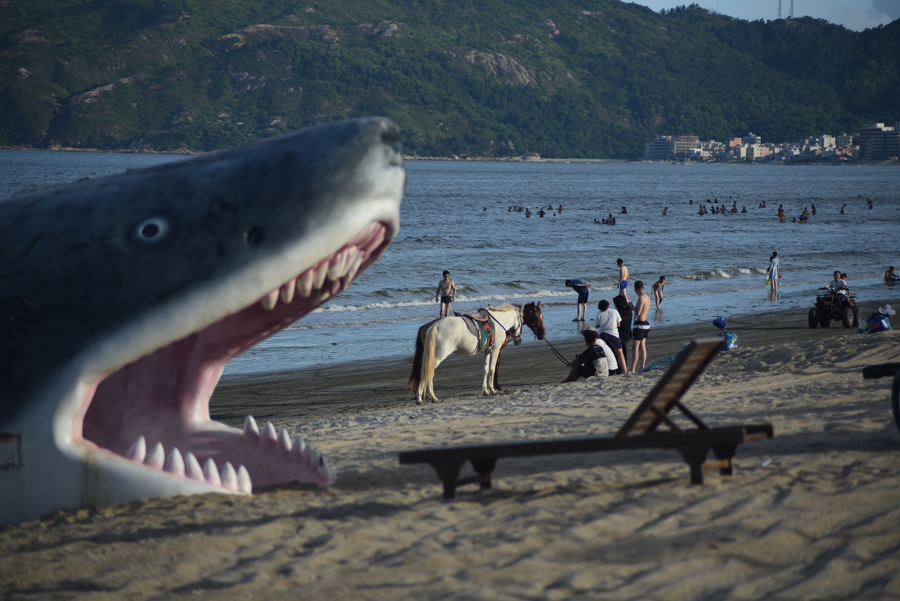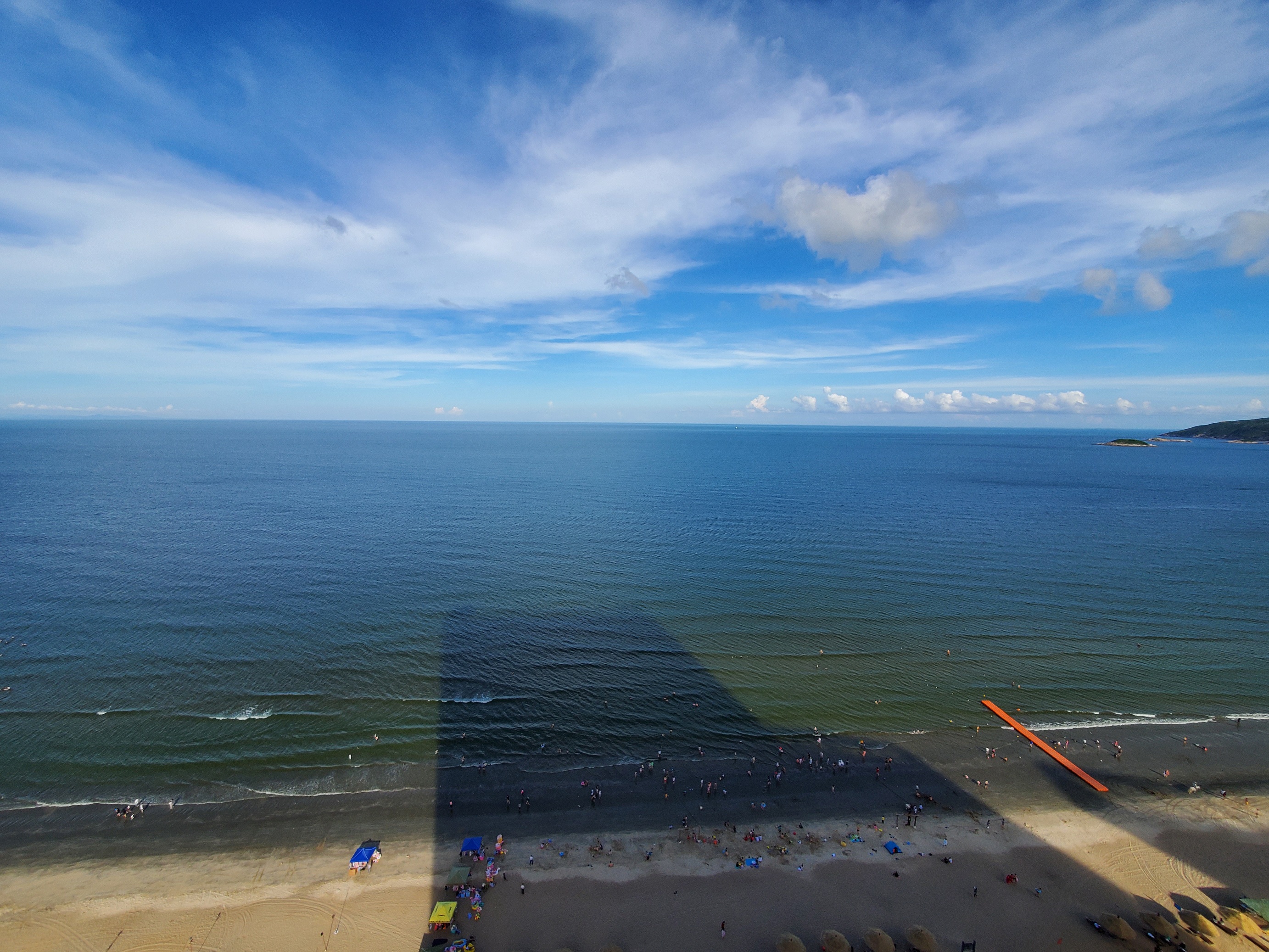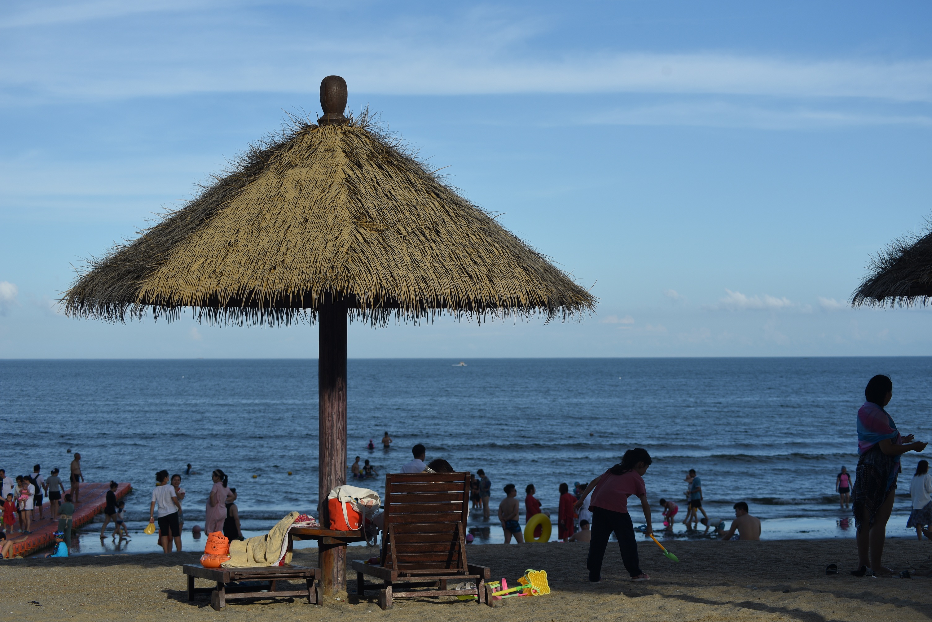 酒店下面是大海,正值旅游旺季,游人很多。