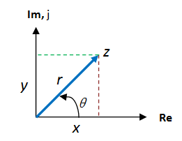 1) A point with coordinates of (x,y) in the complex plane(or z plane)