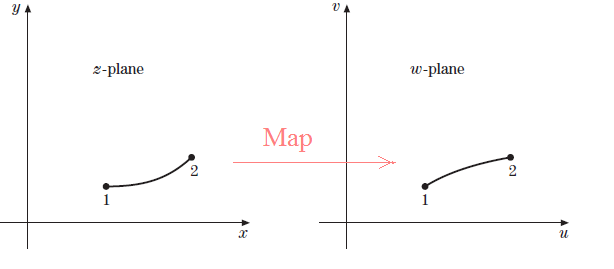 The relationship between the independent variable z and the dependent variable w can be pictured as a mapping operation, as shown below.
