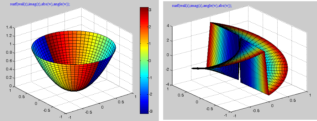 surf(real(z),imag(z),real(w),imag(w))