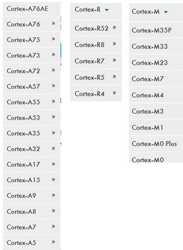 Three architecture profiles are provided for ARM.